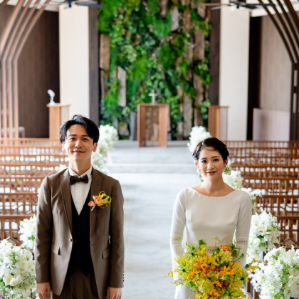 市内最大規模を誇り、高さ6.2mのグリーンウォールの祭壇が象徴的なチャペル。天候に左右されず、屋内にありながらも美しい緑と陽光に包まれた空間で感動の一時を《180名まで着席可》