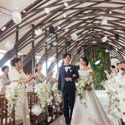 市内最大規模を誇り、高さ6.2mのグリーンウォールの祭壇が象徴的なチャペル。天候に左右されず、屋内にありながらも美しい緑と陽光に包まれた空間で感動の一時を《180名まで着席可》