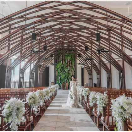 市内最大規模を誇り、高さ6.2mのグリーンウォールの祭壇が象徴的なチャペル。天候に左右されず、屋内にありながらも美しい緑と陽光に包まれた空間で感動の一時を《180名まで着席可》