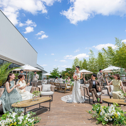 市内最大規模を誇り、高さ6.2mのグリーンウォールの祭壇が象徴的なチャペル。天候に左右されず、屋内にありながらも美しい緑と陽光に包まれた空間で感動の一時を《180名まで着席可》