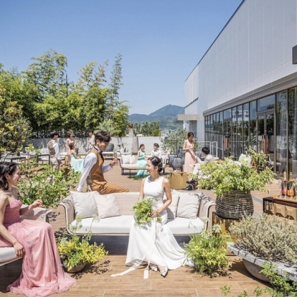 市内最大規模を誇り、高さ6.2mのグリーンウォールの祭壇が象徴的なチャペル。天候に左右されず、屋内にありながらも美しい緑と陽光に包まれた空間で感動の一時を《180名まで着席可》